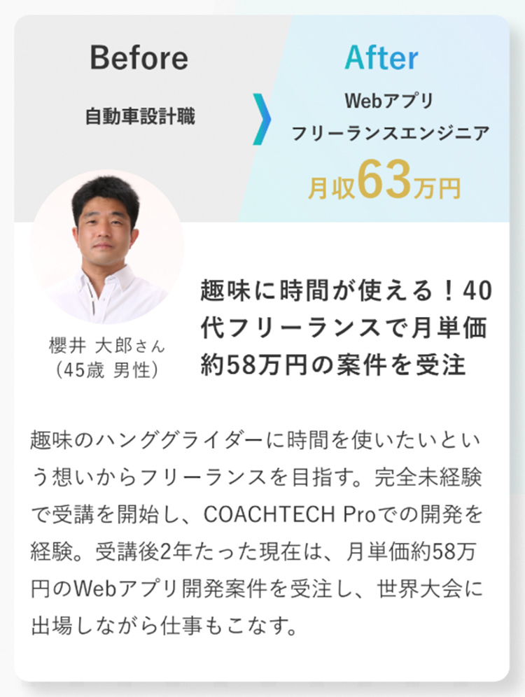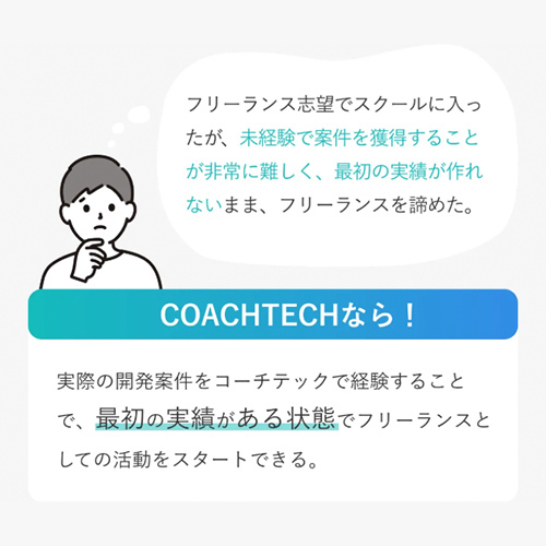 COACHTECH Proで開発実績をつくった卒業生が、フリーランスで高単価を獲得した実績も。