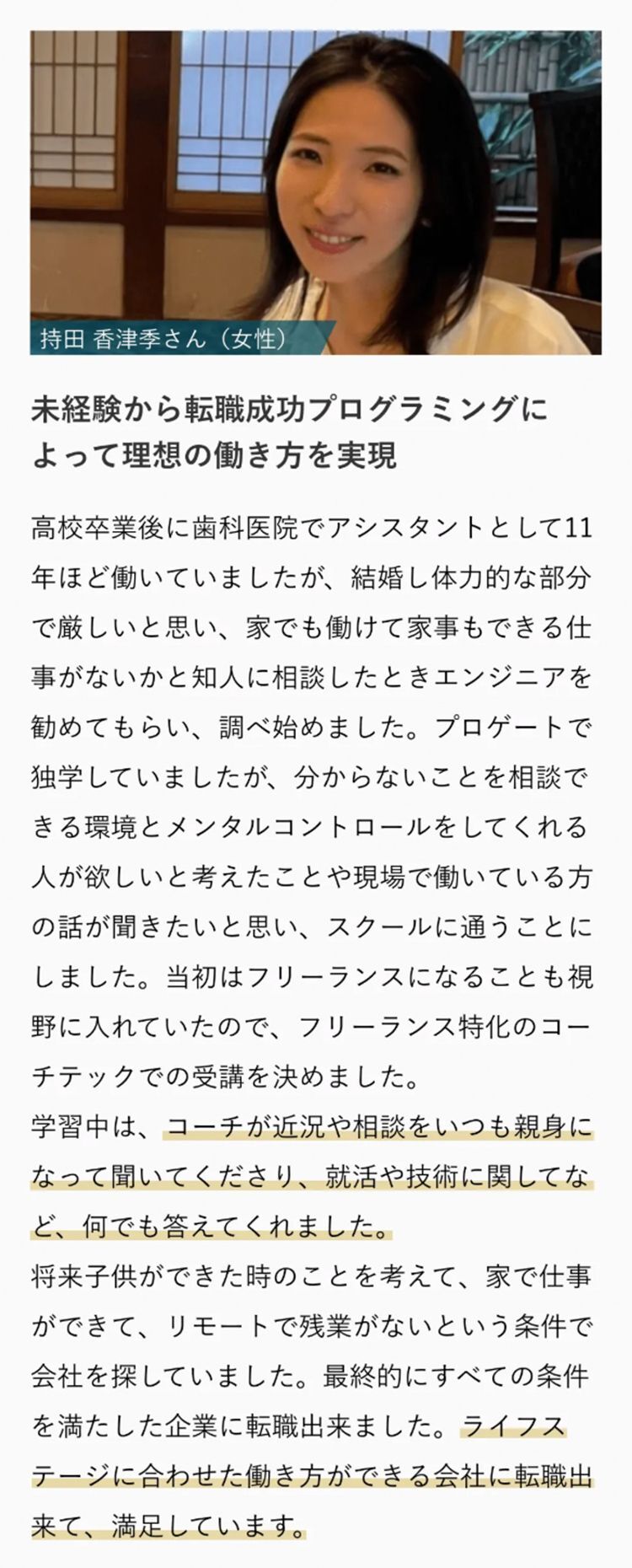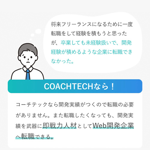 COACHTECHは、卒業後に向けたサポートも手厚く魅力的です。