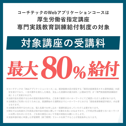 COACHTECHの講座は、厚生労働省の給付制度の対象になります。