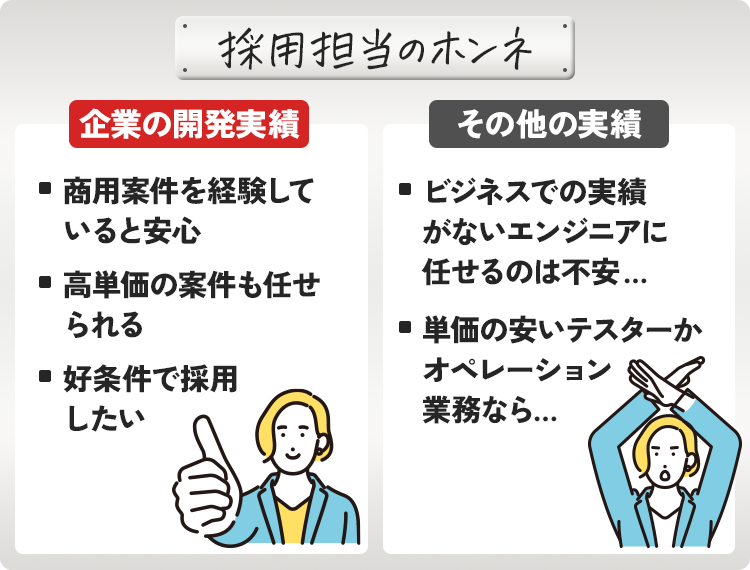 企業と仕事をしたことがあれば、即戦力のエンジニアとして評価されます。